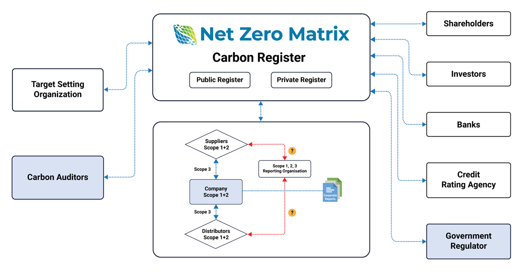 Through our Carbon register, stakeholders can access information about an organization’s progress to net zero through a single source. We further offer Platform as a Service to businesses who wish to manage their climate data inventory and reporting, run KPIs and mitigate emissions.