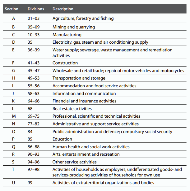 Data is collected from companies which are identified within a particular business Sector as defined through the International Standard Industrial Classification (ISIC) of all Economic Activities.