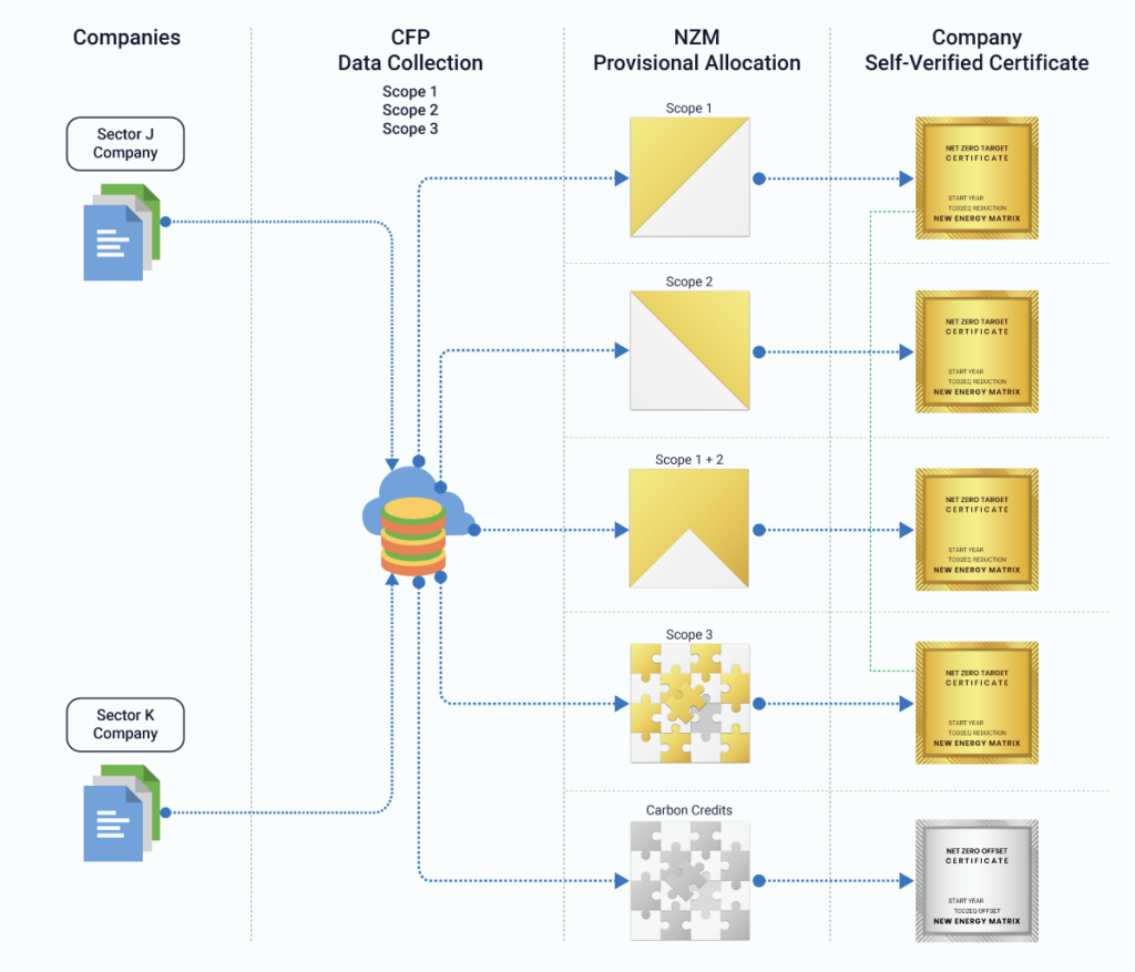 The Net Zero Matrix has been conceived a one-stop shop where validation of reported data can be made by a group of companies in a particular sector, and where relevant Scope data can be easily seen and accessed through distributed identical ledgers rather than from centralised databases in a particular country.