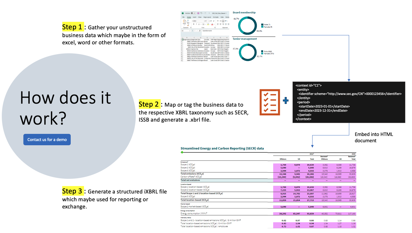XBRL or eXtensible Business Reporting Language is a XML based format for business reporting or exchange that is computer readable. Adopted for decades by multiple regulators across the world as a medium for financial reporting, there is now significant interest to use this for sustainability reporting.